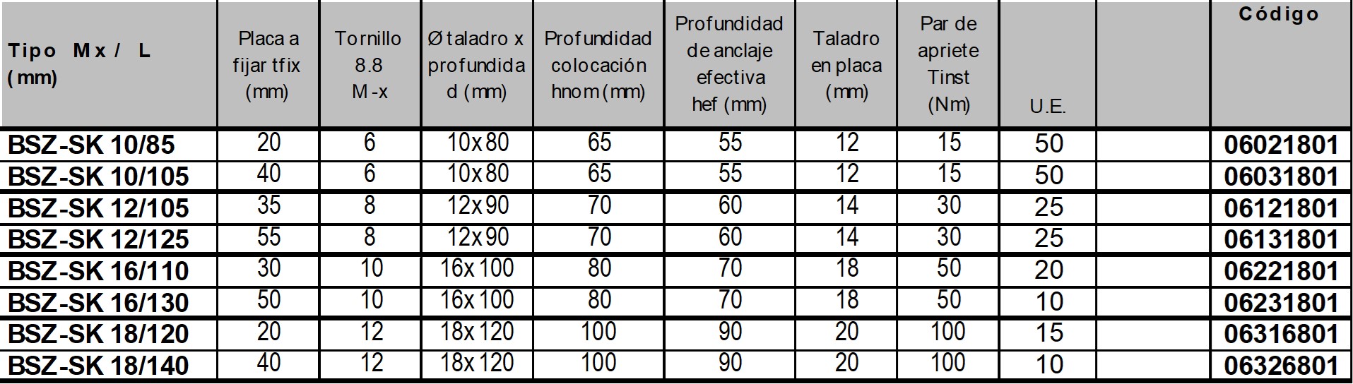 Anclaje de media a alta carga en hormigón fisurado y no fisurado, p.ej. Estructuras metálicas y de madera, barandas, máquinas, andamios y consolas.